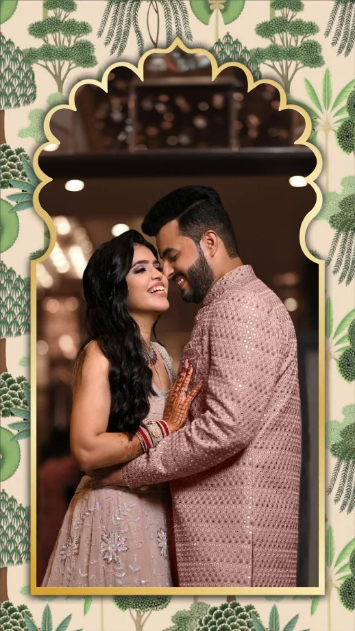 This intricately crafted digital wedding invitation beautifully encapsulates the grandeur and grace of a traditional Indian wedding, infused with a contemporary artistic flair. The card unfolds a visual narrative of love and celebration, adorned with regal elephants, majestic peacocks, and delicate floral motifs that evoke prosperity and elegance. Every page reflects the vibrant cultural essence — from joyous pre-wedding festivities to the sacred union, each event is presented with thoughtful illustrations and poetic details. The palette of soft pastels and lush greens enhances the visual charm, creating a serene yet festive ambiance. This invitation is not just a call to a celebration but a heartfelt journey into tradition, emotion, and artistry — a perfect digital keepsake for a timeless occasion.
