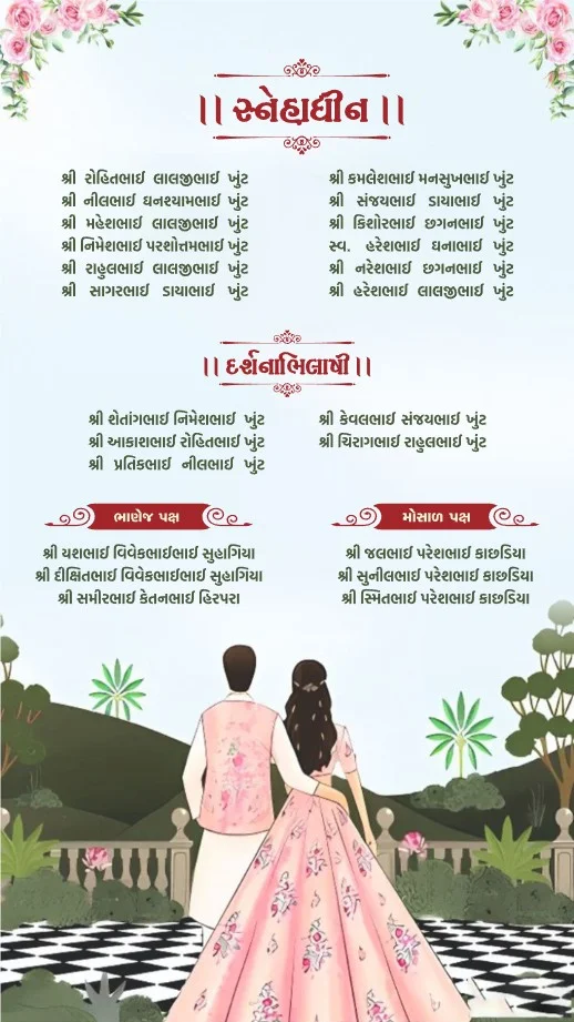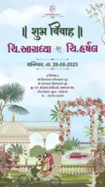 Be the first to review “Wedding ceremony invitation card in gujarati language with couple photo, port, tree, peacock, wedding doodles & leaves 110045” Cancel reply