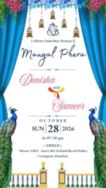 Be the first to review “Wedding ceremony invitation card or invitation video in english language with couple logo, doodles, peacock & beautiful flowers port 110006” Cancel reply