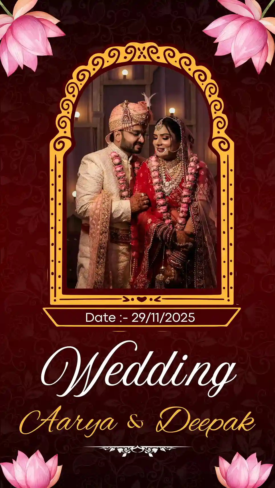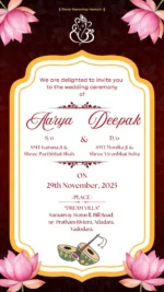 Be the first to review “Wedding ceremony invitation card or invitation video in english language with couple photo, doodles, lotus & beautiful flower port 110010” Cancel reply