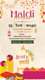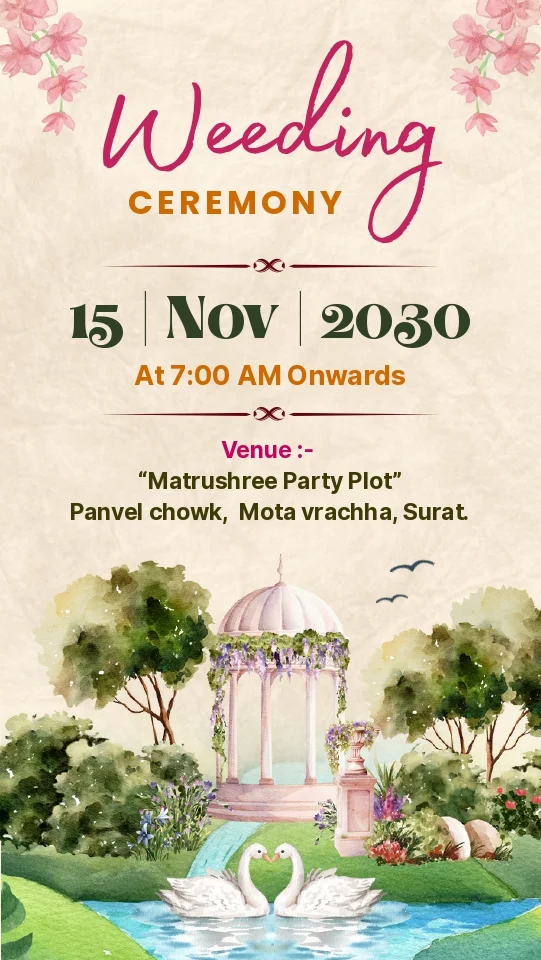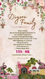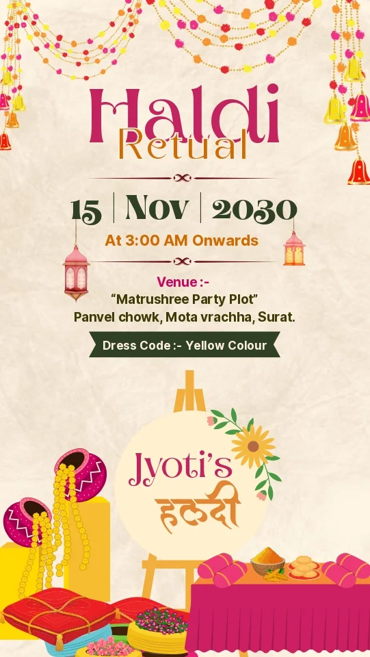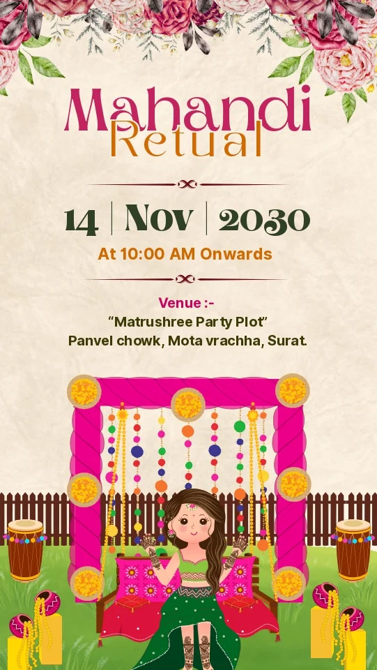 Celebrate love and tradition with this beautifully crafted Indian wedding e-invitation set designed in a vibrant floral theme. The digital invite series features pastel shades of green, blush pink, cream, and festive yellow, ideal for modern wedding ceremonies rooted in cultural elegance.