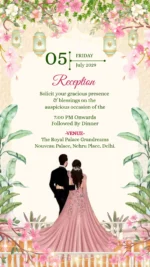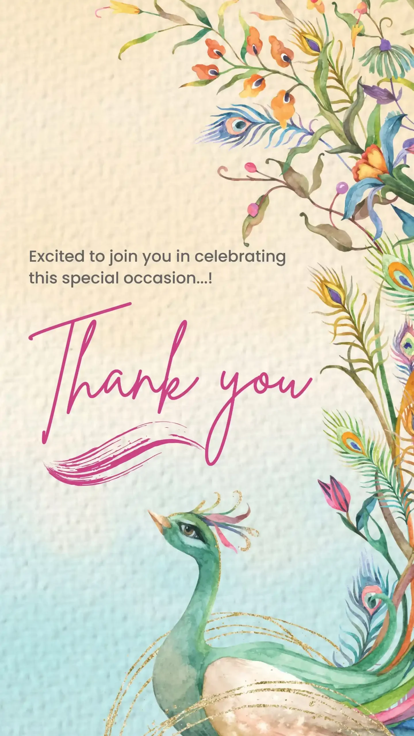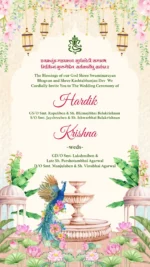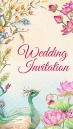 This exquisitely crafted digital wedding invitation blends delicate watercolor aesthetics with the majestic symbolism of the peacock and lush floral motifs, creating a serene and elegant visual narrative. The graceful peacock, adorned with soft pastel plumage and gold accents, exudes regal charm while symbolizing virtues like beauty, prosperity, and divine blessings—a deeply rooted symbol in Indian artistic and cultural traditions. Surrounding the central motif, blooming flowers and botanical elements add a touch of romance and natural elegance, enhancing the overall sense of refinement. With its harmonious design and symbolic richness, this invitation combines traditional elegance and modern subtlety—perfectly suited for couples aiming to invite loved ones into their celebration with artistry, grace, and a touch of cultural depth.
