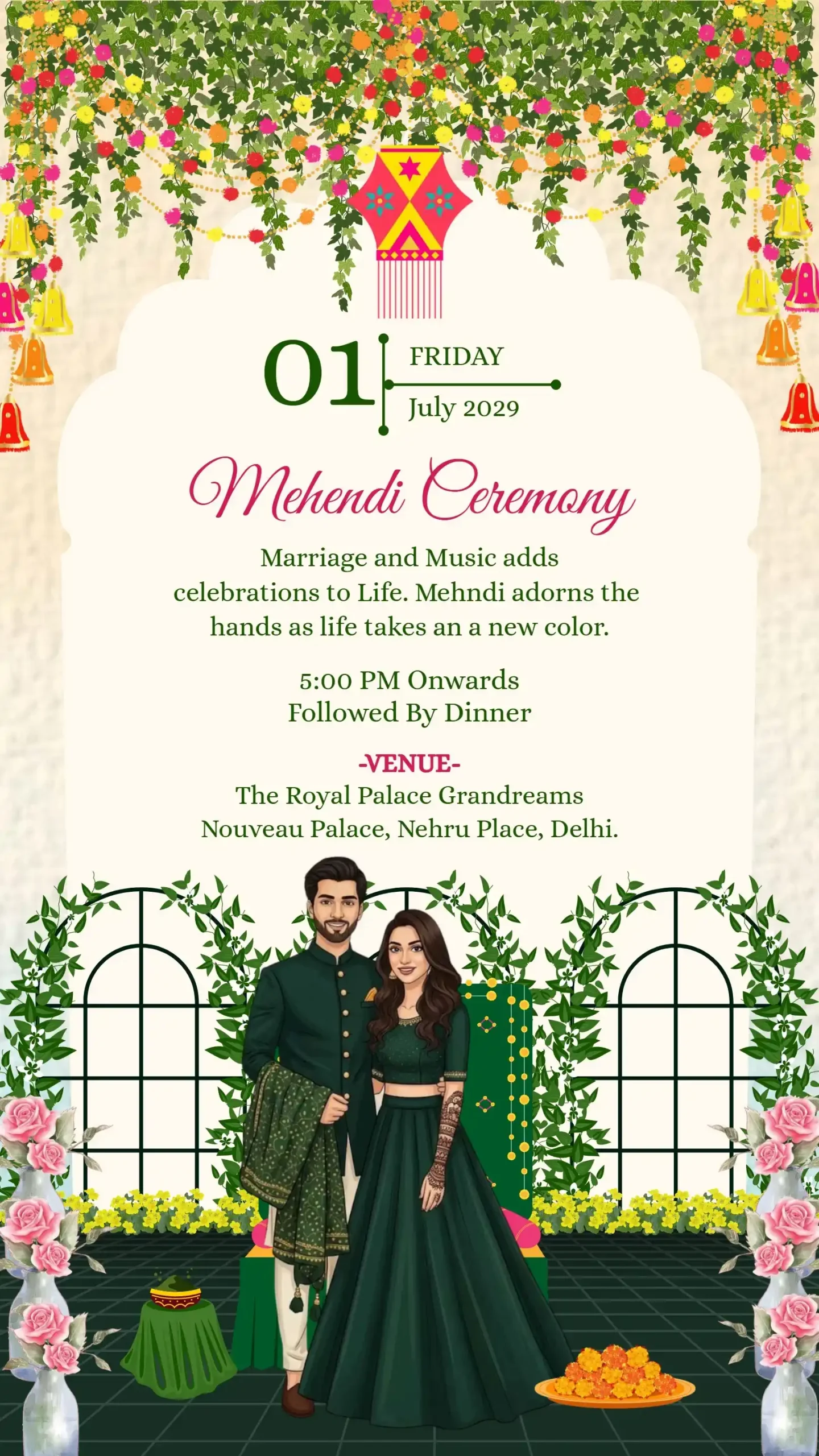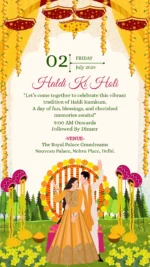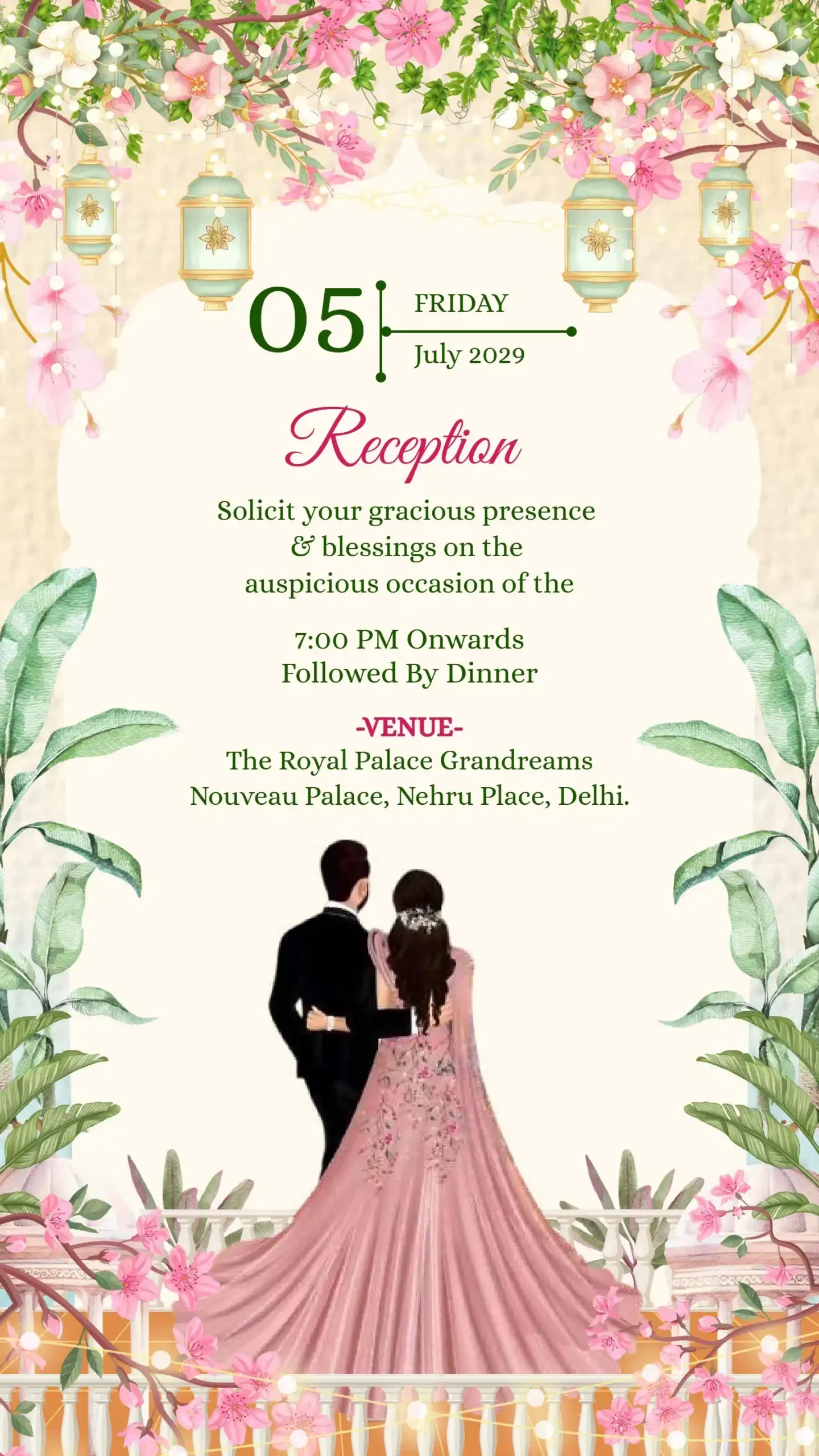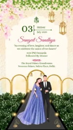Be the first to review “Wedding ceremony invitation card or invitation video in english language with peacock, lanterns, wedding doodles & beautiful flowers 110025” Cancel reply